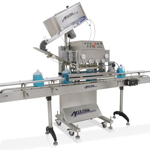 At Accutek we think flexibility, simple changeovers, and dependability (easy to maintain) are some of the most important features of bottle cap machine equipment. A capper that can adjust to handle a range of containers shapes and cap sizes and be upgraded to grow with a customer’s needs will often prove to be a better long term investment. A capper must also be easy to adjust otherwise being able to handle multiple caps and containers wouldn’t be much of a feature. Accutek cappers are designed to utilize minimal change parts allowing for quick and easy 30 minute changeovers. Finally, a capper must be dependable. Accutek cappers are designed with as few moving parts as possible and all parts are standardized. Fewer parts mean fewer chances for part failure and easier routine maintenance.