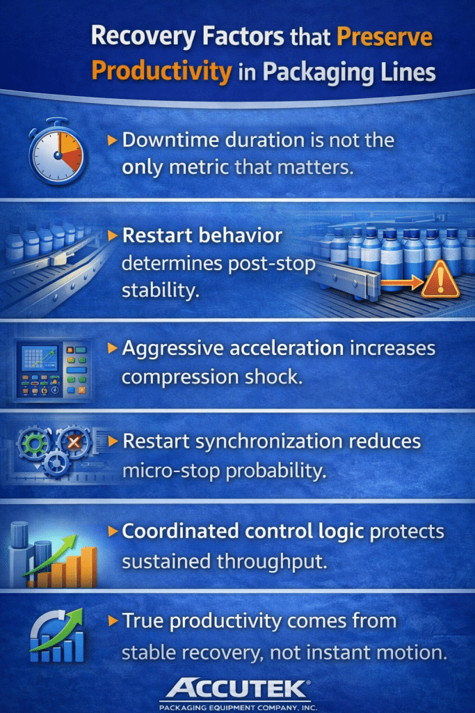 Accutek Packaging Equipment engineers filling, capping, and labeling systems with coordinated ramp logic so that mechanical speed increases do not outpace downstream readiness. When restart behavior is designed as a system event rather than a machine event, instability drops significantly.